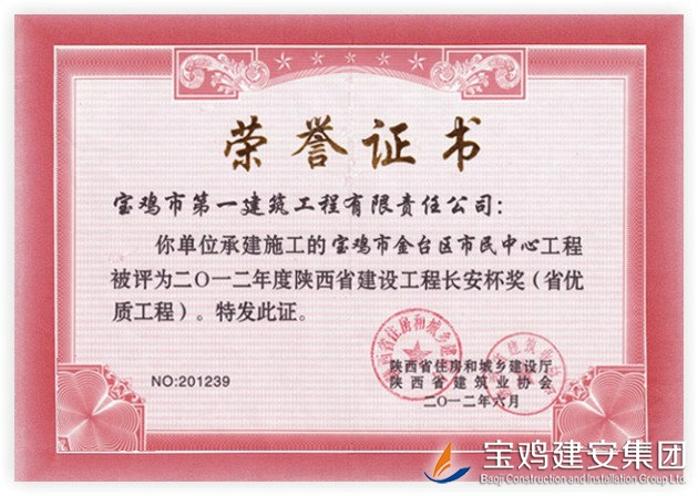Chang’an Cup Award of Civic Center Project for Jintai District of Baoji City