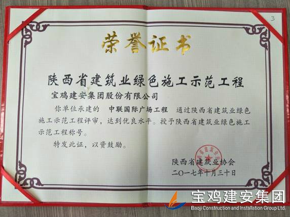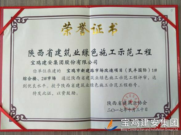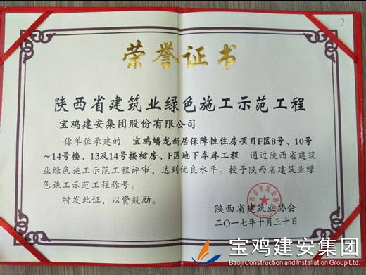 2018年1月26日在西安召開了陜西省建筑業(yè)協(xié)會(huì)第六屆二次理事會(huì)議,我公司承建的科研生產(chǎn)試驗(yàn)大樓、寶雞蟠龍新居SF05標(biāo)段,高新五路明星佳苑、新建路市場(chǎng)改造項(xiàng)目(民豐國(guó)際)、中聯(lián)國(guó)際廣場(chǎng)項(xiàng)目,在2017年度綠色施工評(píng)審過程中,達(dá)到優(yōu)良水平,被授予陜西省建筑業(yè)綠色施工示范工程稱號(hào)。 此次榮譽(yù)的獲得離不開公司各職能部室的指導(dǎo)與項(xiàng)目部的辛勤努力,項(xiàng)目部能緊跟建筑行業(yè)發(fā)展的大方向,不斷加強(qiáng)綠色施工過程管理的學(xué)習(xí),在施工過程中圍繞著“四節(jié)一環(huán)?!崩砟睿瑘?jiān)持走節(jié)能降耗,增效降本,可持續(xù)發(fā)展的施工道路,最終取得了可喜的成績(jī)。 公司綠色施工整體水平近年來得到顯著提高,希望各項(xiàng)目部在2018年的施工過程中,以文明施工,綠色施工標(biāo)準(zhǔn)嚴(yán)格要求自己,力爭(zhēng)在施工管理方面取得更高的成績(jī)。