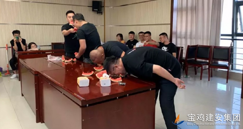 乒乓球比賽后,公司組織了吃西瓜比賽,所有新員工劃分為10支戰(zhàn)隊,伴隨著一陣陣的歡笑,每個戰(zhàn)隊都盡情展示自己獨特的風格,最終第8戰(zhàn)隊獲得比賽的第一名。新員工參與這樣的比賽,彼此間以不同的戰(zhàn)隊、不同的合作形式,達到了更快地融入團隊的效果。