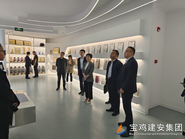 在公司總經(jīng)理胥永寧等集團(tuán)領(lǐng)導(dǎo)的陪同下,考察團(tuán)一行前往寶雞建安大廈,觀看企業(yè)宣傳片,了解集團(tuán)經(jīng)營(yíng)產(chǎn)業(yè)概況。代表團(tuán)一行還參觀了公司23樓體育健身設(shè)施場(chǎng)館及職工文化娛樂(lè)配套項(xiàng)目;在建安大廈22樓企業(yè)展廳里,嘉賓們仔細(xì)觀看了陳列在此的企業(yè)榮譽(yù)成績(jī)、代表性工程及歷史實(shí)物,在胥總和展廳講解員的引導(dǎo)和解說(shuō)下,代表團(tuán)一行全面了解了寶雞建安集團(tuán)六十年輝煌歷史,以及集團(tuán)在推動(dòng)寶雞城建事業(yè)中所做出的卓越貢獻(xiàn)和重要地位。