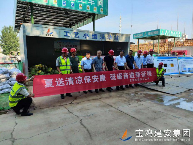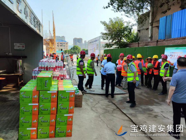 7月18日上午,寶雞高新區(qū)管委會黨工委委員、管委會副主任楊海翔,高新區(qū)總工會主席李廣強,區(qū)教育系統(tǒng)黨委書記、教育體育局局長唐宏,副局長劉輝等一行領導,前往建安集團承建的寶雞高新第三幼兒園建設項目工地,走訪慰問一線員工,開展“夏送清涼”活動。