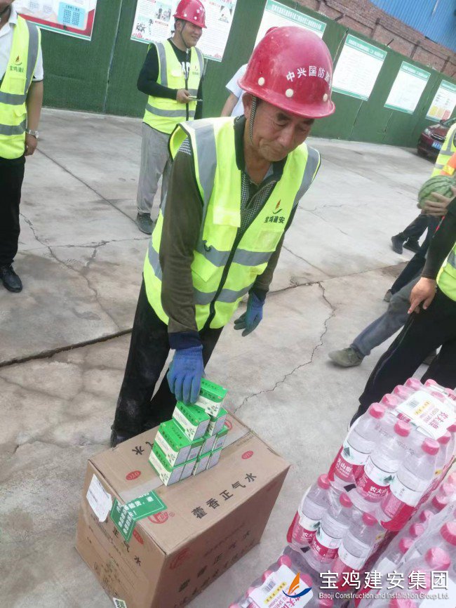 活動現(xiàn)場,高新區(qū)管委會領導親自將西瓜、飲料、純凈水、藿香正氣水等多種防暑降溫用品送到了現(xiàn)場的廣大員工手中,向大家三伏天堅守在一線崗位表示感謝和問候。