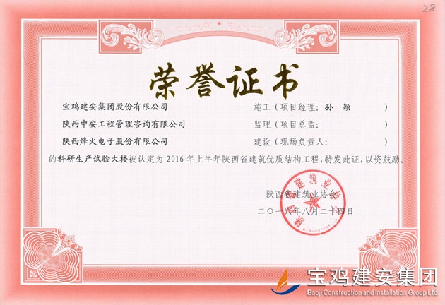 烽火科研生產試驗大樓 省優(yōu)質結構工程