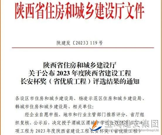 近日,陜西省住房和城鄉(xiāng)建設(shè)廳《關(guān)于公布2023年度陜西省建設(shè)工程長安杯獎(省優(yōu)質(zhì)工程)評選結(jié)果的通知》正式下發(fā),公司承建的中共寶雞市委黨校遷建工程榮登金榜,為集團再添一項陜西省建設(shè)工程“長安杯”獎。