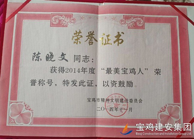 一年一度的“五一”國(guó)際勞動(dòng)節(jié)到來(lái)之際,從寶雞市總工會(huì)傳來(lái)喜訊, “2024年度寶雞市五一勞動(dòng)獎(jiǎng)?wù)隆毕冗M(jìn)名單正式確定,我司安裝分公司先后擔(dān)任平?jīng)龈淮簣@及西寧長(zhǎng)島(宗地三十六)項(xiàng)目一期一標(biāo)段安裝電氣施工員的陳曉文同志榜上有名,受到通報(bào)嘉獎(jiǎng)! 陳曉文同志,1998年畢業(yè)于寶雞技師學(xué)院土建專業(yè),作為一名一線員工,多年以來(lái),他深知理論知識(shí)的重要性,利用業(yè)余閑暇時(shí)間,不斷學(xué)習(xí)土建安裝電氣專業(yè)課程。憑借著不懈的努力和刻苦鉆研,他于2015年通過(guò)了二級(jí)建造師考試,繼而于2020年通過(guò)了一級(jí)建造師考試,連續(xù)取得了機(jī)電、市政、公路證書(shū)。 陳曉文同志長(zhǎng)期工作在施工一線,勤勤懇懇、兢兢業(yè)業(yè),以勤奮努力的工作熱忱和扎實(shí)細(xì)致的工作作風(fēng),贏得了公司上下的一致好評(píng),他所帶領(lǐng)的班組2014、2015、2016年連續(xù)被評(píng)為優(yōu)秀班組。其本人也曾于2014年被寶雞市文明委授予“最美寶雞人”榮譽(yù)稱號(hào)。 |